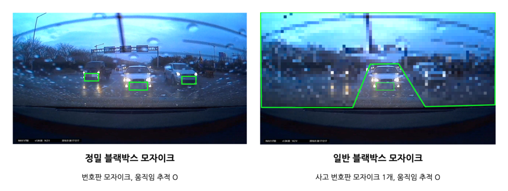 - 자동차 블랙박스 동영상을 화면에 등장하는 자동차를 자동으로 모자이크 처리하는 기술.