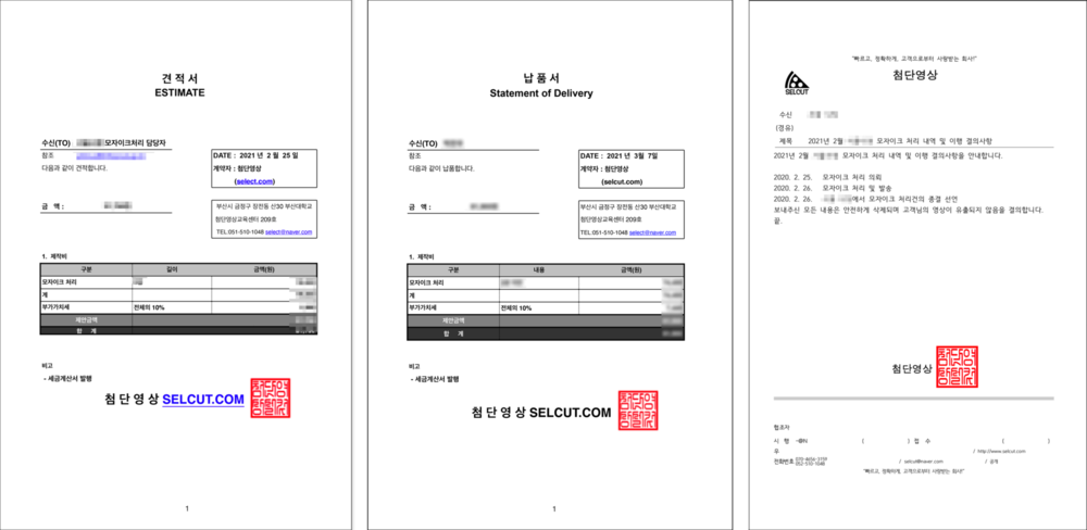 견적서, 납품서, 개인정보보호 이행결의 공문 발송